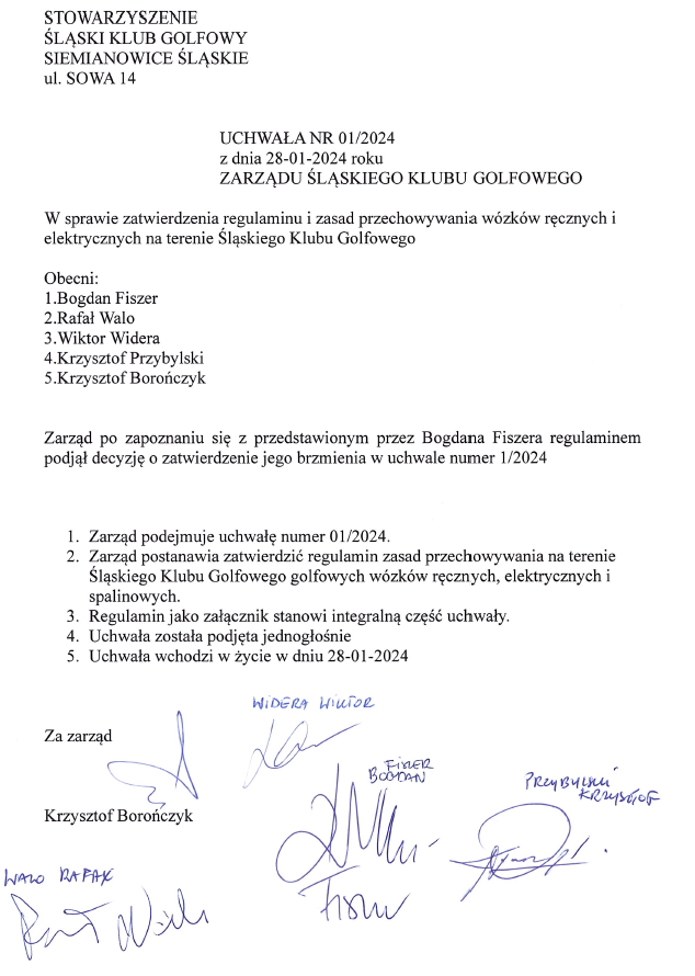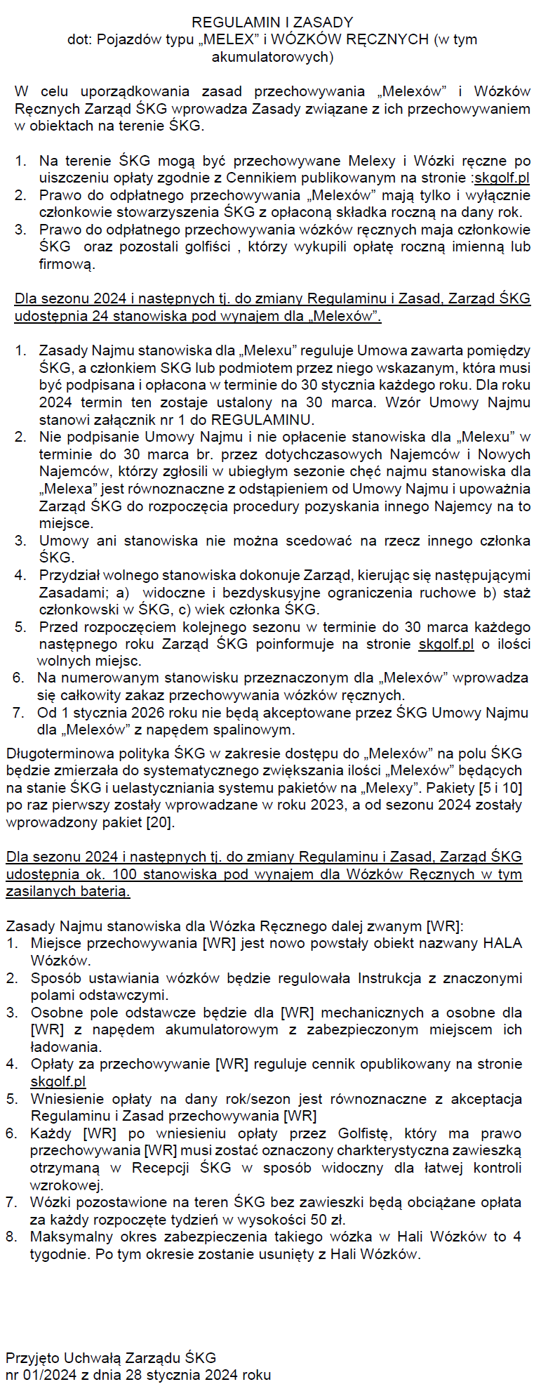 Regulamin wózkowni i melexowni